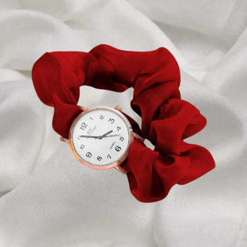 The Red Scrunchy Watch is the perfect mix of fashion and functionality – ideal for girls who love bold elegance and want their accessories to speak loud and clear.